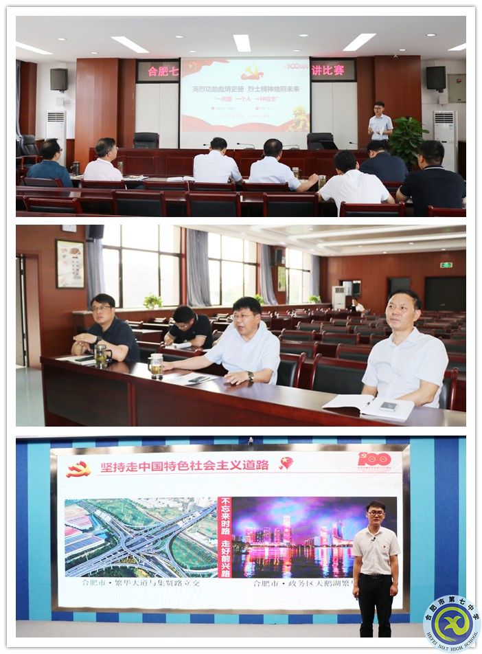 为深入宣讲习近平总书记关于党的历史的重要论述,宣讲中国共产党百年奋斗的光辉历程,根据市委宣传部、市委讲师团《关于组织开展第四届“理响合肥”暨“举旗帜·送理论”党史学习教育微宣讲比赛的通知》精神,合肥七中党委精心组织党史学习教育微宣讲校内选拔,推荐第三党支部党员、高二年级地理组张启发老师代表学校参加合肥市教育系统的宣讲比赛。为使理论宣讲更加深刻系统,合肥七中党委书记邓宗国和党委班子成员现场听取张启发老师宣讲并细心指导,反复打磨,在团队老师们的协助下,在张启发老师的努力下,最终定稿《一条路 一家人 一信念》。