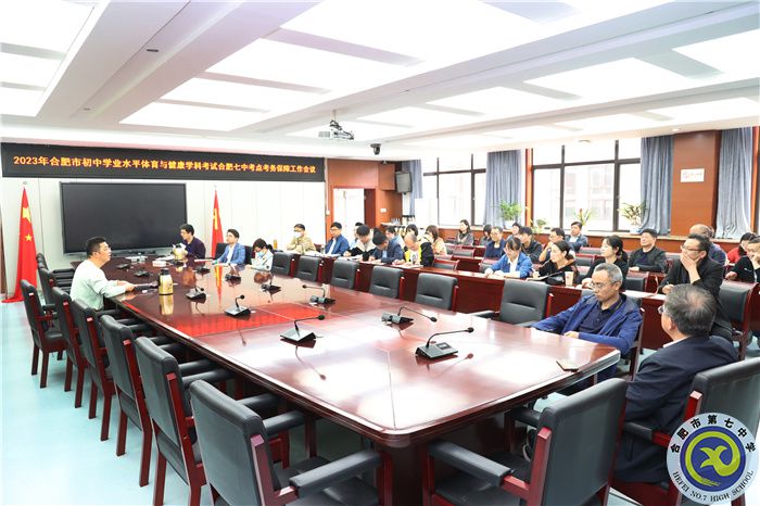 4月17日上午,合肥七中于行政楼301会议室召开中考体育考试考务人员培训会。考试院副院长程迅、驻局纪检监察组副组长杨建平、合肥七中考点考务主任蔡家元,合肥七中党委书记、校长邓宗国,合肥七中党委委员、副校长刘先群及全体考务人员参与此次会议。