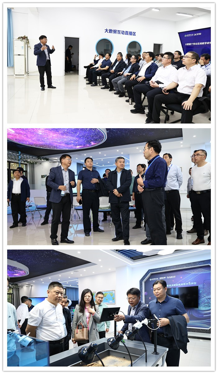 在301会议室,邓宗国系统地介绍了合肥七中“135”教育数字化校园建设应用模式,及“系统布局,整体推进,应用为王”的应用格局,介绍了合肥七中利用数字化技术助推师生发展等方面的有效路径与显著成效。