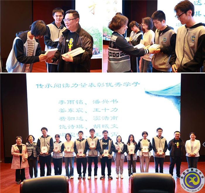 谢庆霞与秦明共同为优秀学生代表赠送了最新签名书籍并合影留念,以嘉奖优秀学子的良好阅读习惯,鼓励更多七中学子继续探索知识领域,积淀更有价值的丰富人生。