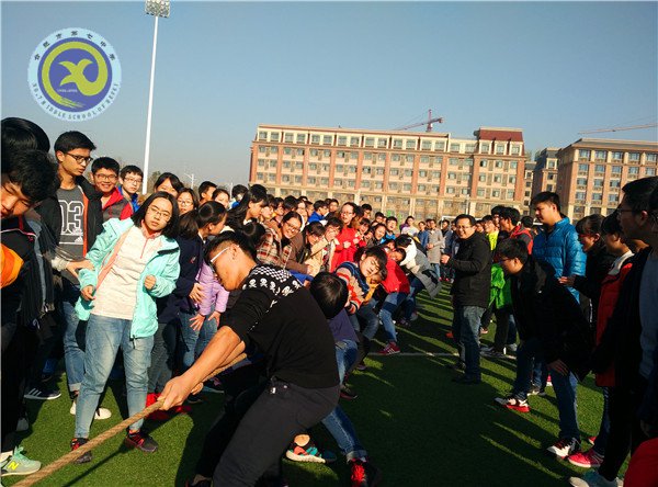 本次比赛以班级为单位组队,第一轮为循环赛,从12月7日至12月9日每日大课间晨跑结束后,共有12支班级参赛队伍两两比赛,每队共15人,均由10名男生和5名女生组成。“加油!加油!加油!”响亮而且有节奏的加油声在操场上响起,比赛中,各班级参赛人员一个个攥紧粗绳,涨红了脸,用尽全身的力气,一分一寸地向自己身后的阵地艰难挪移。队员们都咬紧牙关把绳子向后拉,绳子中间的红线左右摇摆。两边队员都整齐地往后倒、向后退,高三学生也在队伍旁边助阵加油,恨不得抓起绳子和同学一起努力,加油声、欢呼声、呐喊声,此起彼伏,飘荡在整个操场上空。周围的同学们甚至比参赛者更为卖力,加油声喊得震天响。就连平日忙于工作的班主任们,也自觉地在场边加入为班级加油的队伍中,挥舞着双手,为同学们呐喊助威。