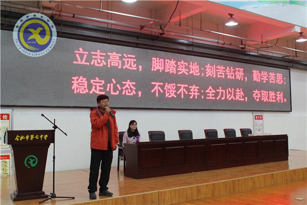 如火四月,青春燃烧!为更好激励高三学生奋力拼搏,冲刺高考,在校长室统筹下,合肥七中高三级部于4月1日下午认真组织召开了2017届高三2016-2017学年度奖学金发放仪式暨合肥市二模表彰大会。大会由高三年级部王瑞副主任主持,邓宗国副校长、高三年级部主任、24位班主任及高三全体学生在体育馆二楼参加会议。