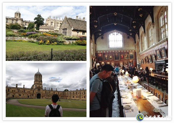 在牛津基督学院,我们领略了哥特式教堂的独特魅力。牛津基督学院建于1525年,曾在200年间出过16位英国首相。还在大门外时,我们便能透过繁茂的花园看见建筑的上半身。进入中央的学院大厅,这里便是电影《哈利波特》的重要取景地。大厅中间的长桌子上摆满餐具,这里是学生们用餐的场所。桌子旁是两条长长的过道,直通最前方的讲台。大厅的天花板大约有三层楼高,四周排满了历代名人的肖像,肖像之上是绘满了宗教绘画的彩色玻璃。走进这座建筑,便不由产生了严肃、庄重之感。出了大厅是块巨大的圆形景观草坪,草坪正中央伫立着一口黑色的喷泉池。草坪四周都被高大墙壁包围着,放眼望去,围墙之上,只有蓝天白云,这样闲适自然的景色可谓独一无二,是在高楼林立的中国绝无仅有的。