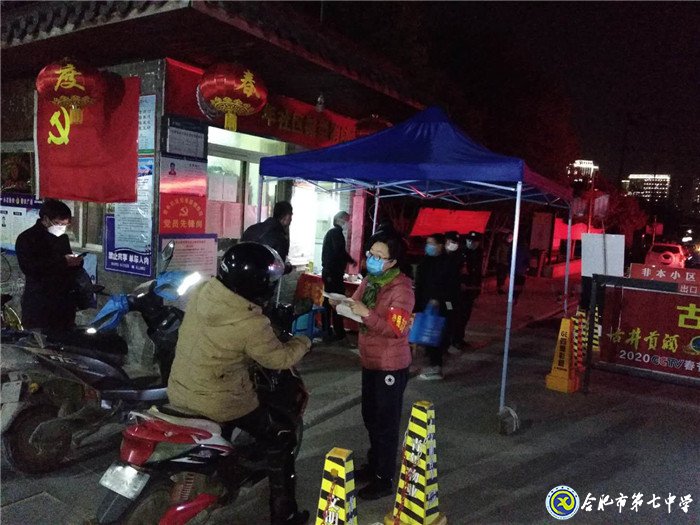 晚18:00-19:45,和“下沉”的前十日相比,这晚青年小区东区唯一的出入口——西门显得异常忙碌,各类返肥人员提箱拎包地站在防控宣传台前准备办理入区手续。小区值守点的几位同志分工明确、忙而不乱。三位安保师傅一人负责管理进出小区的机动车道,一人负责管理进出小区的非机动车道,一人负责在小区已封闭的几处小门巡视。唐丽霞、王祥、孙松三人主要负责量体温,询问返肥人员的出发地、返肥原因、有无复工证明等信息,根据是否来自重点疫情地区、是否为复工人员、有无复工证明、有无电子健康证明或乡镇(街道)出具的纸质健康证明等对返肥人员一一进行甄别,安排、指导相关人员填写登记表和健康档案卡等材料,对需要隔离的人员耐心做好解释,告知他们隔离的要求以及重要性与必要性,提醒他们做好隔离期间物质准备和心理准备。所有材料一一完善、检查无误后,不惧危险将需要隔离的人员送到住处,进行隔离。