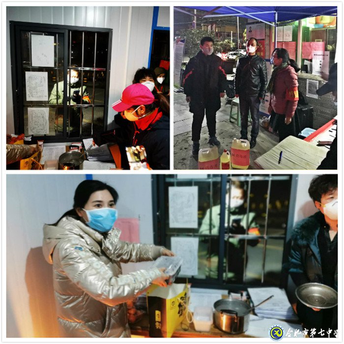 合肥七中党委书记杨开仁校长、副书记苏卫兵副校长一直心系志愿者,多次到值守点督查、看望、慰问下沉的志愿者们,平常电话联系、微信嘱托不断,了解大家的工作情况和需求,对大家面对疫情敢于斗争、勇于担当、奉献社会的精神给予充分肯定。党委委员夏立松副校长每天给离家较远的志愿者吴国庆送去“爱心便当”,给下沉志愿者送去了无限的温情与温暖。